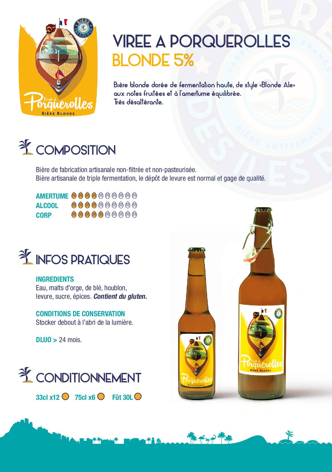 VIREE DE PORQUEROLLES : BIERE BLONDE 33 & 75 CL - FUT 30 L